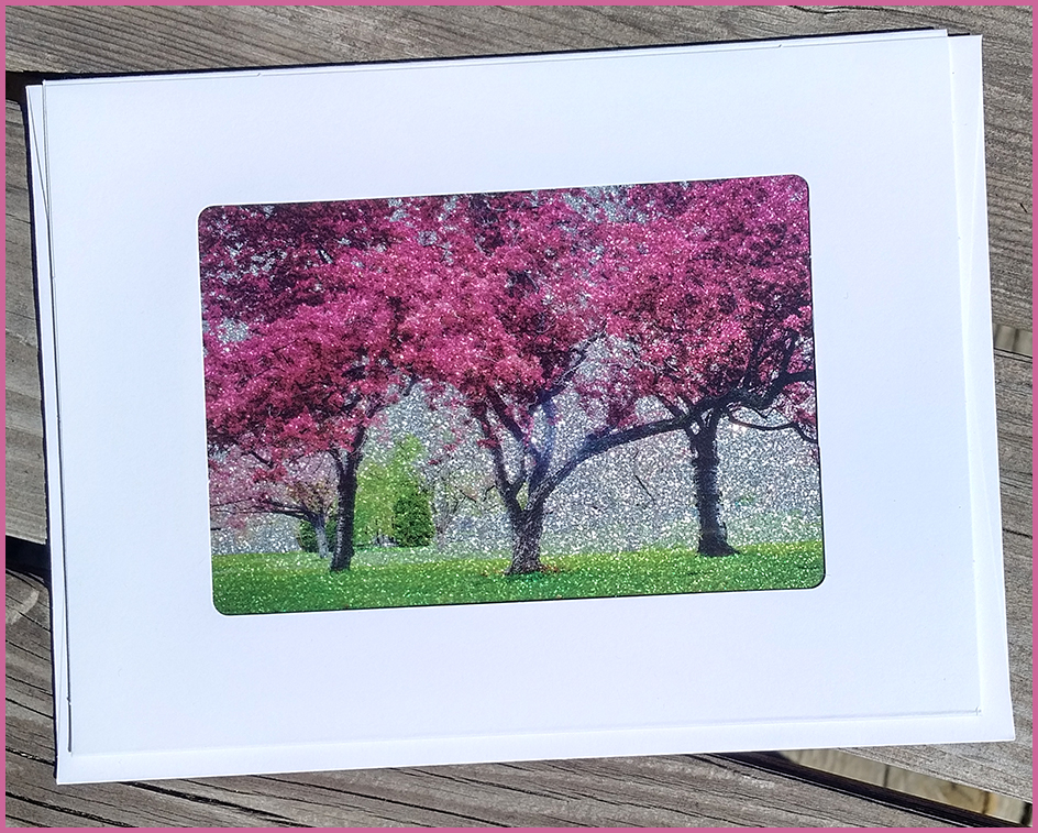 Our glitter and foil art cards are highly reflective. Images start to feel less familiar and scenes take on a different quality due to the foil or glitter background.
